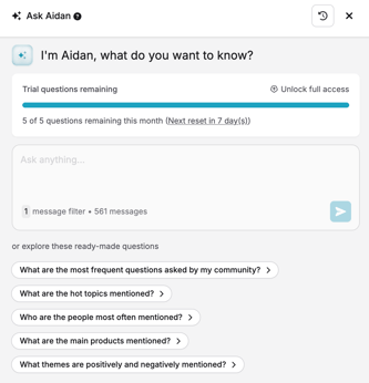 Audience Intelligence (and its AI agent Aidan) is a new set of capabilities allowing users to ask 5 different pre-defined questions (less depending on their industry) or the question of their choosing to instantly get insights from their data.